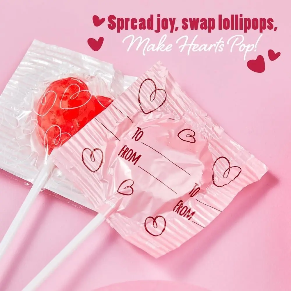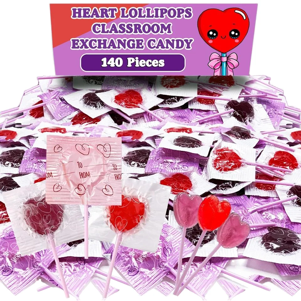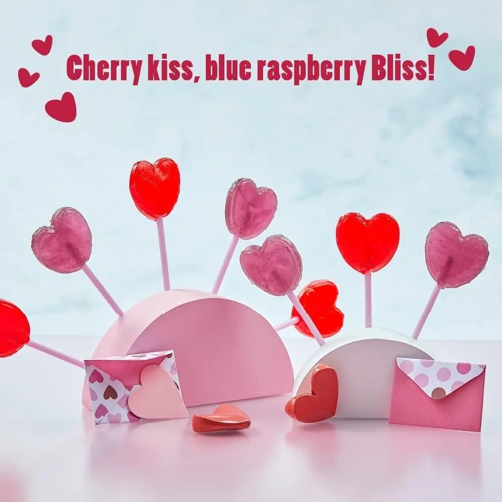 Bulk 140 Count Heart-Shaped Purple Red Lollipops Kids' Assorted Berry Flavored Candies Individually Wrapped Addressable Labels